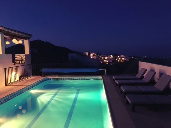 De villa ligt midden in de natuur en biedt een spectaculair panoramisch uitzicht op de kustlijn en de bergen.